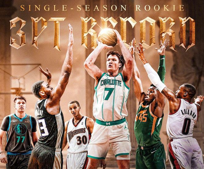克神打法简单高效且不容易受伤,黄蜂队又没有争冠压力,这么打下去,没人知道克神的上限在哪!我不知道克神能否抢走联盟为弗拉格预定的年度最佳新秀奖杯,但有一点可以肯定,克神绝对有机会挑战库里的三分王历史地位。目前,库里生涯三分球命中数为4233个,考虑到库里37岁的年龄和出勤率,他有机会完成5000记三分大关。