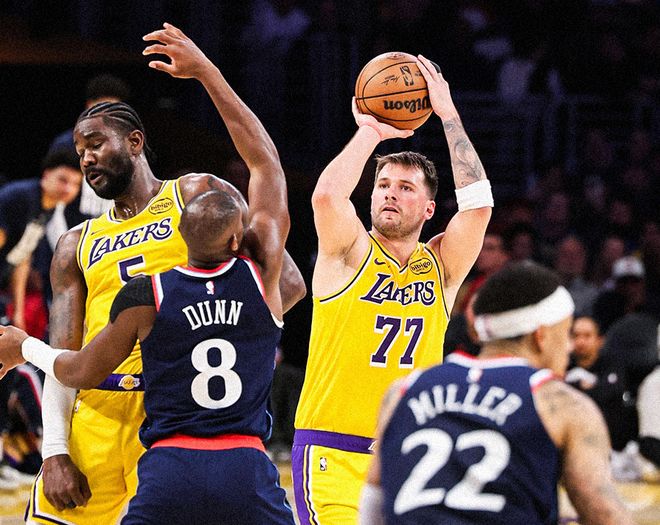 东契奇甩锅老詹的三分打铁,包括里夫斯的三分打铁,让湖人关键时刻也不灵了。湖人在宏观层面上的问题很多,进攻就依靠三巨头支撑局面,防守端就依靠角色球员协防,没有太多战术可言。而在微观层面,我们列三组数据就说明问题,本赛季东契奇和里夫斯共同出战572分钟时间,湖人百回合赢4.9分;东契奇和老詹共同出战773分钟,湖人百回合输3.8分;詹姆斯和里夫斯共同出战447分钟,湖人百回合输3.7分;詹姆斯+东契奇+里夫斯共同出战238分钟,湖人百回合输3.7分。简单来说,带上老詹,湖人净效率值就是负的。