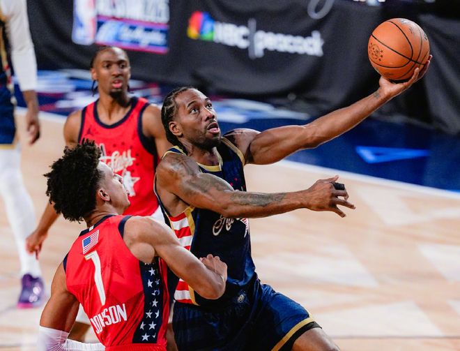 只不过在最近几场,哈登走人+加兰没复出,小卡身上压力太大了。北伐期间小卡一共缺席了4场比赛,分别是1月中旬客场之旅连续缺阵打猛龙+奇才+公牛,以及2月底缺阵和森林狼的比赛。第一次缺阵,伦纳德的伤情是左脚踝伤势复发,在和湖人的比赛中出现伤情;而最近一次,是生病。不过紧跟着伦纳德就回归,打了鹈鹕和勇士的背靠背。但很明显状态不算特别好,两场都是23分,场均29分钟时间,16次出手。先说一点,如果单凭比赛统治力,排除掉一些争议的获利,伦纳德应该是本赛季MVP。