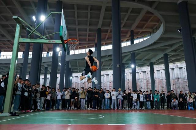 从矣进宏踏入球馆的那一刻起,现场气氛便被彻底点燃。简单的热身过后,这位从云南大山一路“飞”进CBA全明星舞台的草根传奇,接连奉上数记技惊四座的扣篮——助跑、起跳、腾空、砸扣,动作一气呵成,身体仿佛真的装上翅膀。每一次完成高难度扣篮,现场千余名学子的呐喊声浪便层层叠叠地涌来,不少人高举手机,生怕错过任何一个瞬间。