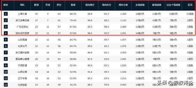 CBA排名:前四名正式锁定季后赛 北京意外掉队 谁最具有冠军相?