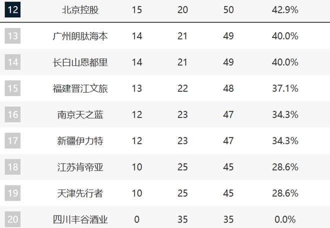 而江苏和天津落后5个胜场,基本上不可能了,四川目前35连败。