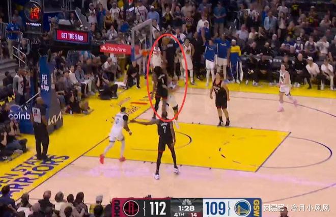 比赛还剩下46秒时,火箭发动进攻。裁判报告指出,勇士内线格林在身边没有明确防守人的情况下在禁区待的时间过久,应该被吹罚防守三秒违例。