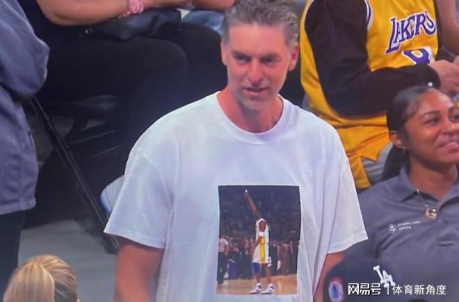 管理层估计也怕观众掀屋顶,赶紧把加索尔请来当"定海神针2.0"。只见大加索尔穿着科比81分纪念T恤往那一坐,好家伙!这哪是来看球,分明是来开科比追思会2.0版。要我说啊,这T恤选得妙——前脚刚有人拿83分碰瓷科比,后脚大加就穿着81分战袍来镇场子,这波操作我给满分!