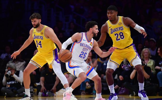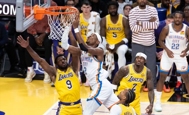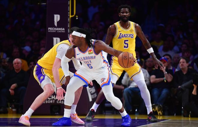 当东契奇、里夫斯和詹姆斯清一色高挂免战牌时,哪怕再虔诚的紫金拥趸也不敢奢望湖人能够抵挡住卫冕冠军雷霆的攻势,只希望球队能在天使之城的父老乡亲面前打出精气神、赛出风采,然后输得体面一些。然而,双方冰冷的分差再一次让湖人球迷的愿望落空,紫金军团面对卫冕冠军潮水一般的进攻浪潮,仅仅抵抗了不到两节时间,最终更是输了整整36分。场面之惨烈,真是闻者伤心、见者流泪……