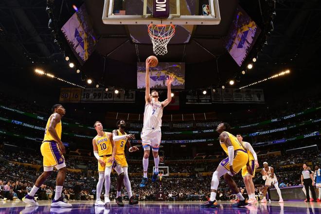 北京时间4月8日,NBA常规赛争夺继续,雷霆123-87大胜湖人,此役湖人詹东里三巨头悉数伤缺,斯马特、海斯也不打,雷霆早早建立起两位数领先,第三节湖人更是直接崩盘,分差一口气被拉开到30分以上,末节完全沦为垃圾时间,最终雷霆拿下6连胜的同时送给湖人3连败。