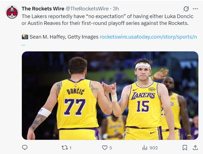 东契奇与里夫斯才是湖人的第一巨头与第二巨头,没有这两人的湖人队综合实力大打折扣,他们的伤情牵动着每一个湖蜜的心,但对火箭来说他们的伤情也会改变防守策略,乌度卡作为防守型主教练战术的变动肯定更大。
