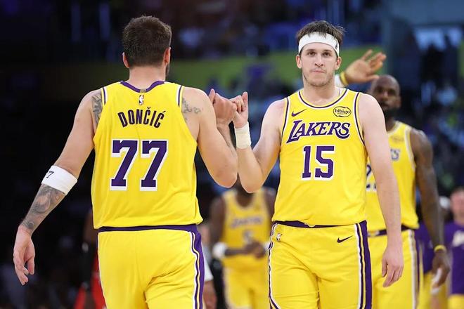 东契奇本赛季对阵火箭的数据堪称恐怖:两场胜利场均38.0分,命中率50%,三分37.9%,外加7.5篮板7.0助攻。里夫斯则是湖人除詹姆斯外的第二持球点。两人合计贡献球队近半得分。