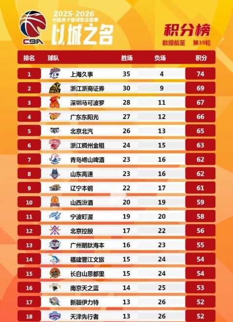 聚焦北京首钢,他们近来整体发挥稳健高效,目前以26胜13负稳居积分榜第五位,距离前四仅差一个胜场,形势极为有利。